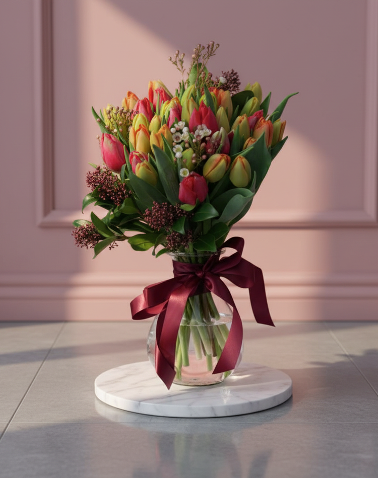 Перед отправкой букета мы можем прислать вам фото в любой удобный для вас мессенджер. Это дает возможность в случае необходимости скорректировать букет, заменить то, что вам не понравилось и утвердить композицию.