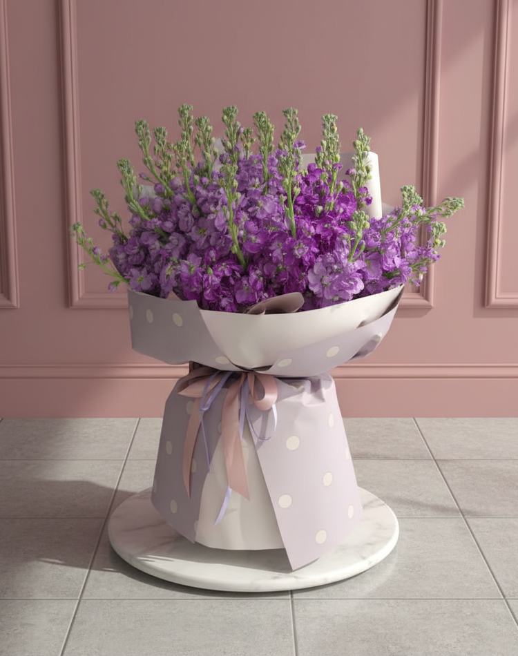 Bouquet of 35 purple matthiola