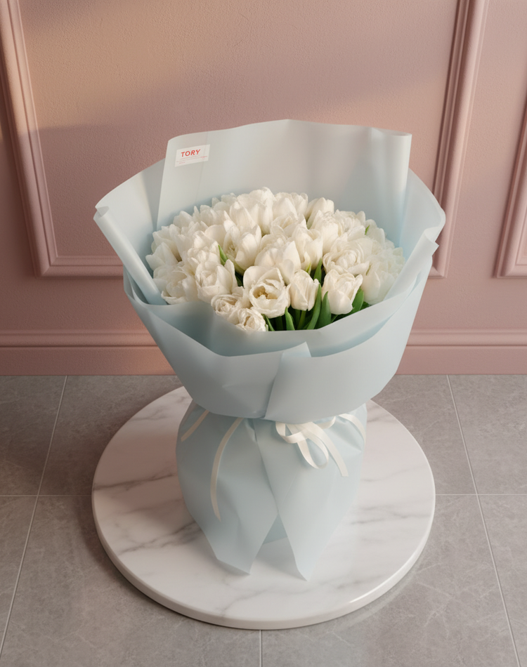 Bouquet of 35 white peony tulips