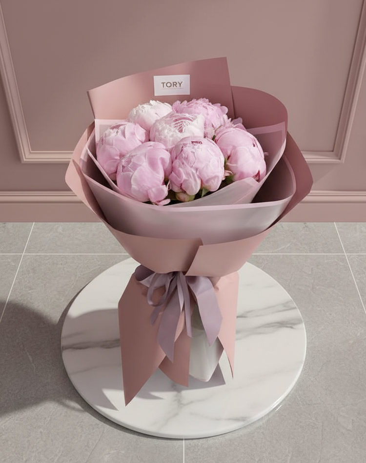 Bouquet of 7 pink peonies
