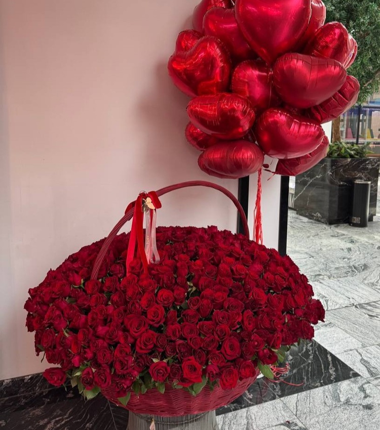 501 red roses in a basket