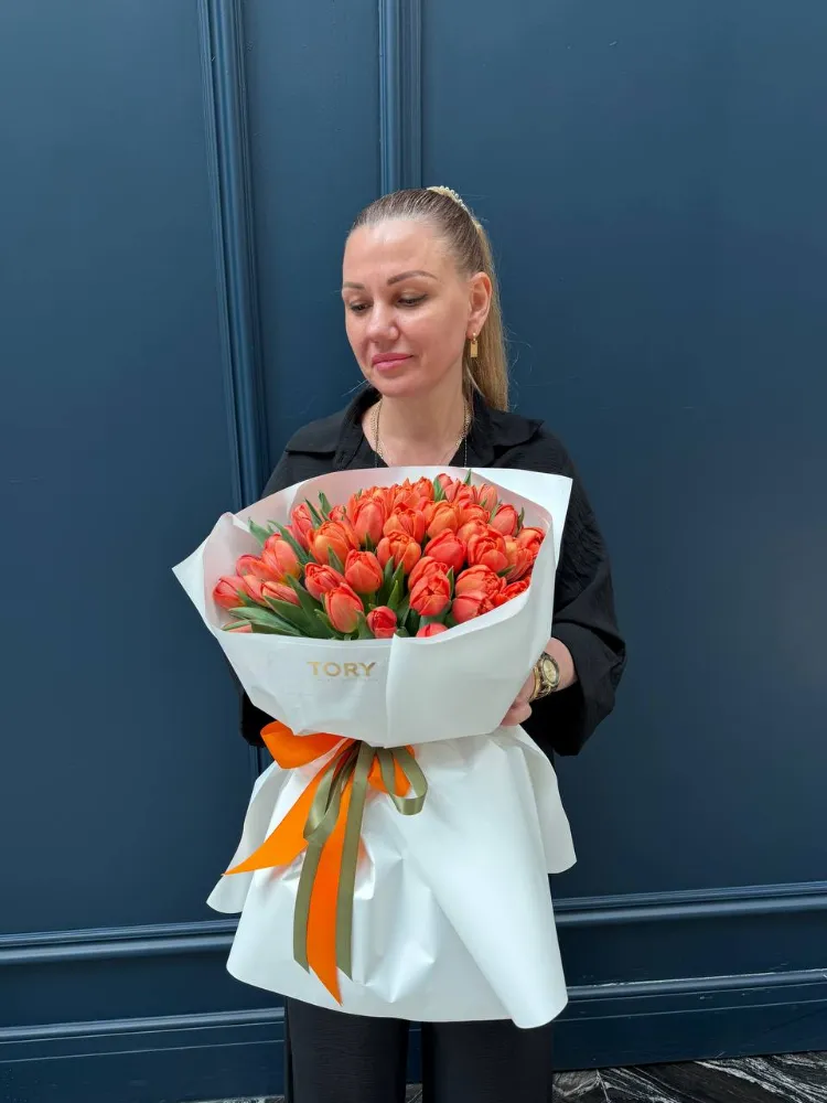 A bouquet of 51 orange peony tulips