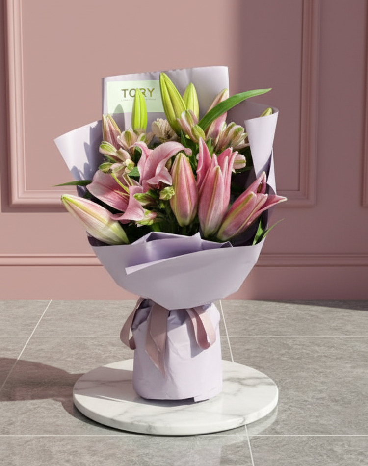 Composition: Lily - 4, Alstroemeria - 5, Flower Wrapping Paper - 1