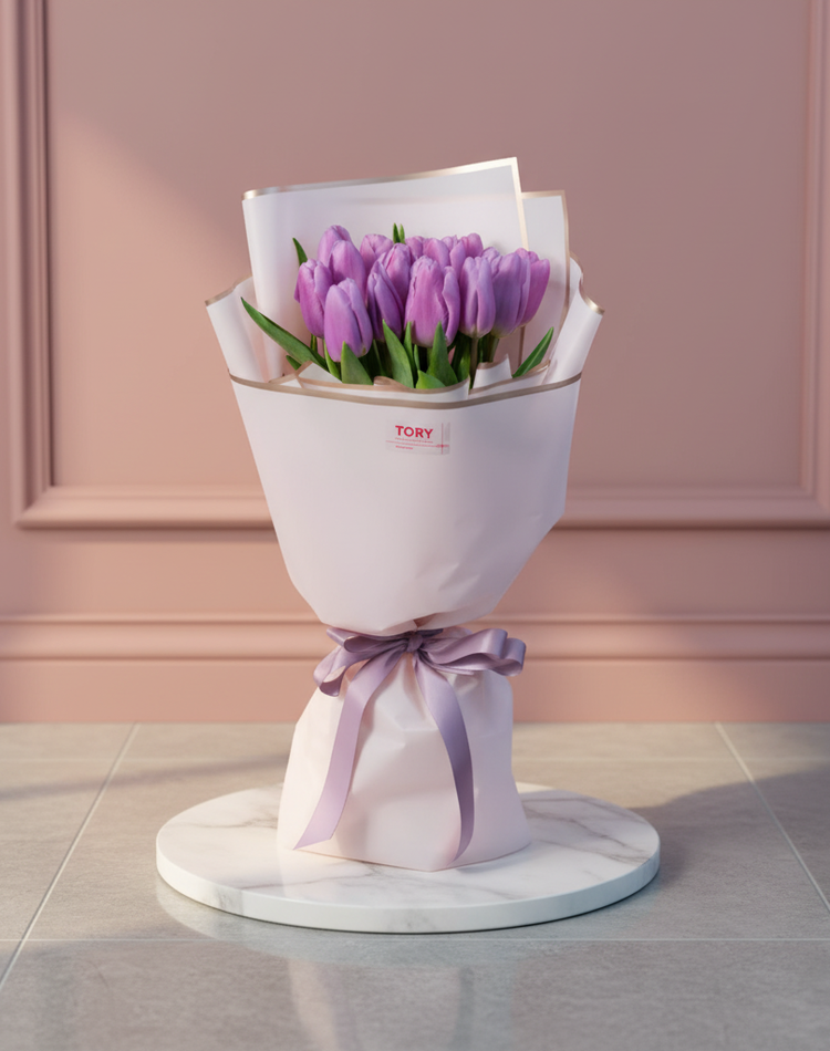 Bouquet of 15 Purple Tulips