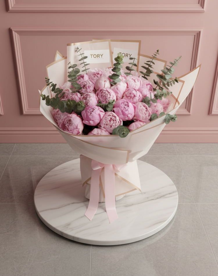 Composition: Peony import pink - 31, Eucalyptus - 2, Flower Wrapping Paper - 1