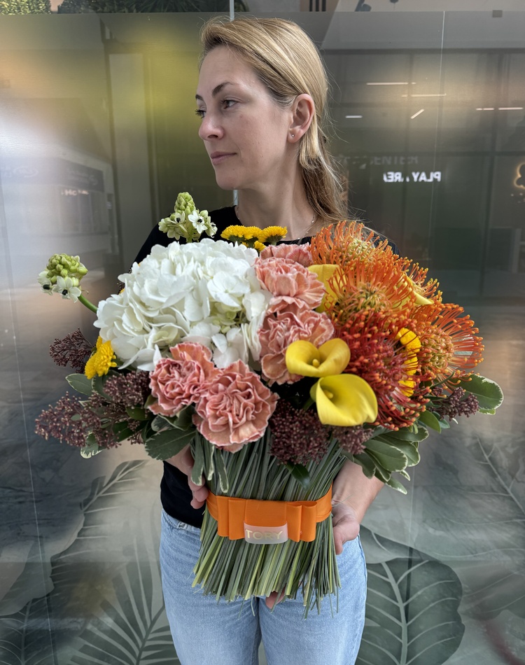 Self-delivery from the salon. You can pick up your order from the TORY Flower and Gift Studio.