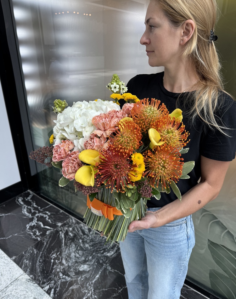 Our studio employs highly qualified florists whose task is to make the perfect bouquet for you. Also, on request we send a photo of the finished composition and this is another opportunity to make sure that all wishes are taken into account.