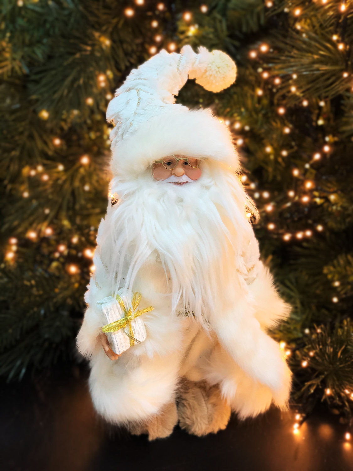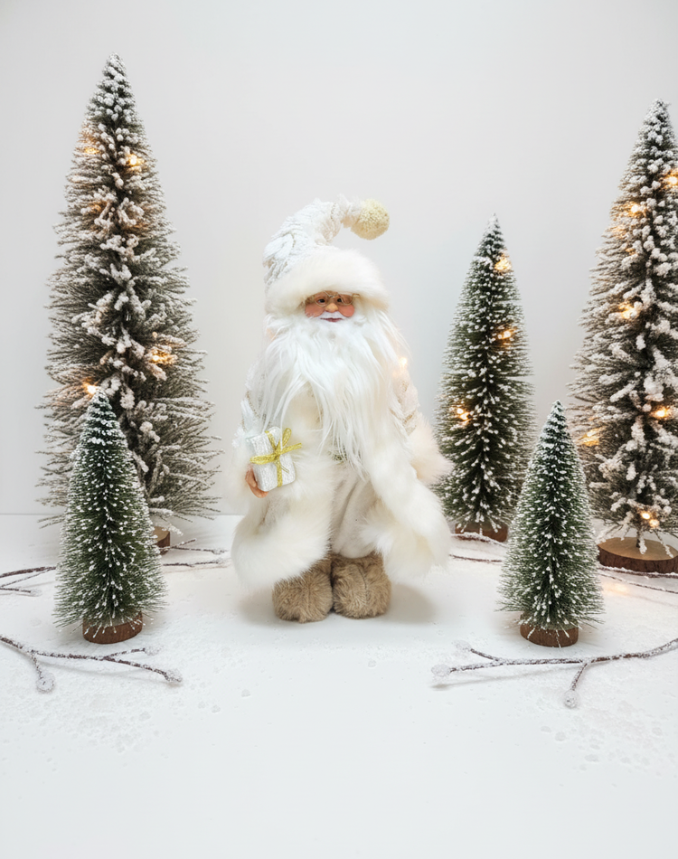 Decor Santa in a cream fur coat, 30 cm